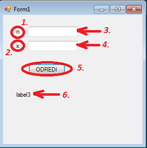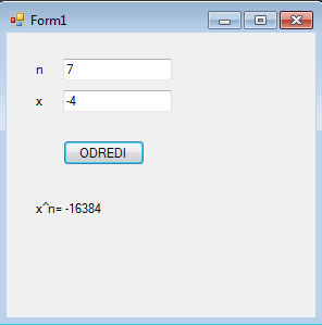 Пример 2. Написати програм који притиском на командно дугме ODREDI одеђује и исписује n-ти степен броја x . Број n је природан број, а број x цео број. Ова два броја корисник уноси.