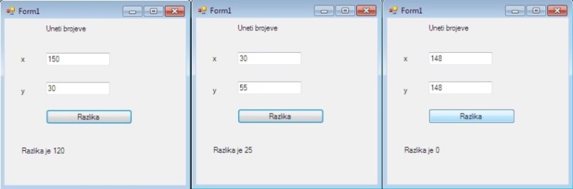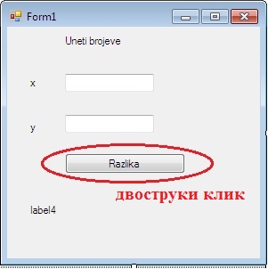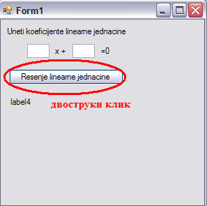 Преименујемо label-e и button1 Слика 6.29. Изглед форме након преименовања компоненти |
