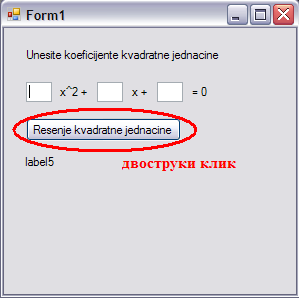 label5.Text = "Kvadratna jednacina nema resenja.";