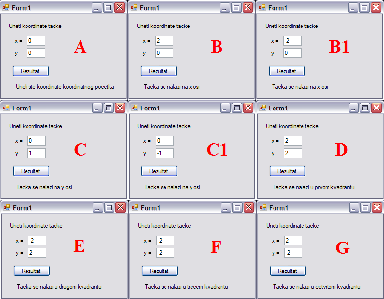 Покренемо програм и проверимо (нпр.за тачке са слике A, B, B1,