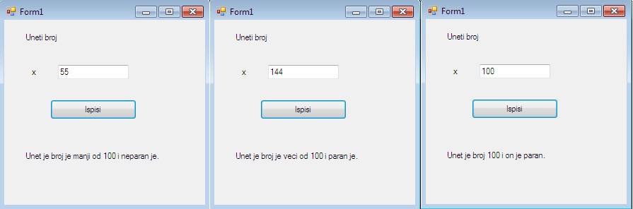 label2.Text = "Unet je broj 100 i on je paran. ";