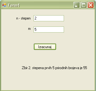 label3.Text = "Zbir " + n + ". stepena prvih " + m + " prirodnih brojeva je ";