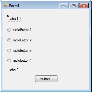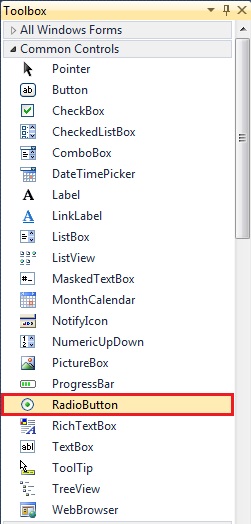 RadioButton се примењује за неку опцију за коју су могућа само два случаја, или да се примењује дата опција или да се не примењује. Наша форма може садржати више RadioButton-а али у било ком тренутку само један можемо примењивати. За почетак, требало би да направимо нову Windows Form апликацију у Visual Studio-u, а затим двоструким кликом левог тастера миша на RadioButton у ToolBox-у да додамо RadioButton. Када се RadioButton постави на форму, морамо подесити особине, најлакши начин за то је у прозору Properties. Прозор Properties можемо отворити притиском на дугме F4. Особине можемо подесити и динамички, тј. одређеним кодом.