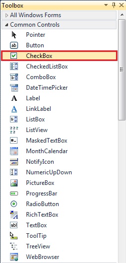 CheckBox можемо креирати двоструким кликом левог тастера миша на CheckBox у ToolBox-у. Када смо додали CheckBox, ми можемо мењати његове особине, позицију, величину, место, итд.