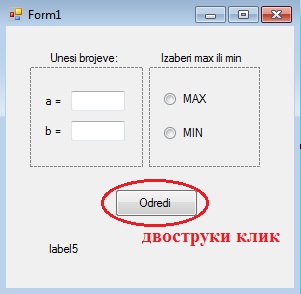Притиском на дугме "Odredi", u label-и се исписује одговарајућа порука кориснику.
