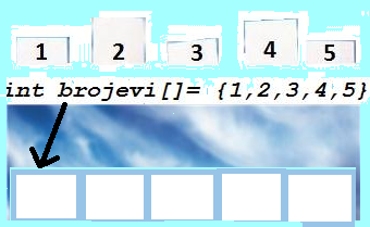 Да бисмо прочитали или променили вредност неког елемента, можемо му приступити навођењем индекса тог елемента у угластим заградама иза одговарајуће променљиве низовног типа.