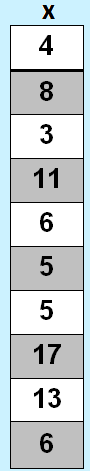 Овакви низови се могу шематски приказати као хоризонтална или вертикална листа података, што можемо видети на следећим сликама.