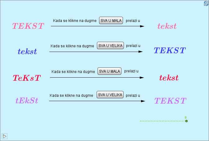 Након овога следи писање кода. Два пута кликнемо на дугме SVA U VELIKA и напишемо одговарајући код за то дугме, а затим два пута кликнемо на дугме SVA U MALA и напишемо одговарајући код за то дугме.
