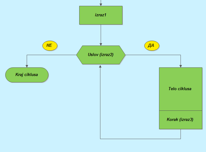 | Напомена: For петља еквивалентна је следећој while петљи | ![]() |