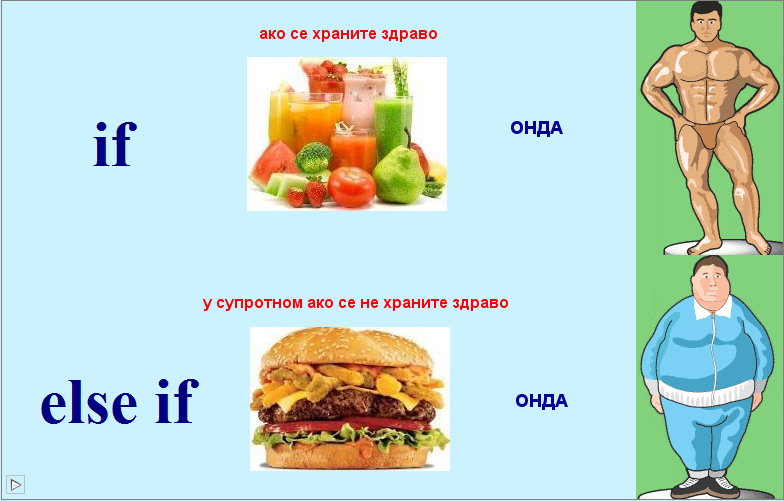 | Напомена: Између кључних речи else и if постоји размак, зато што су то две засебне кључне речи. | ![]() |