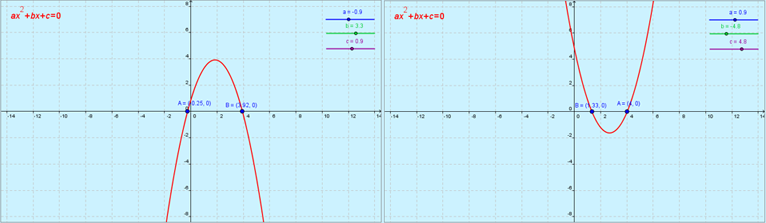 Погледајмо како се понаша график квадратне функције када мењамо вредности коефицијената a, b и c.