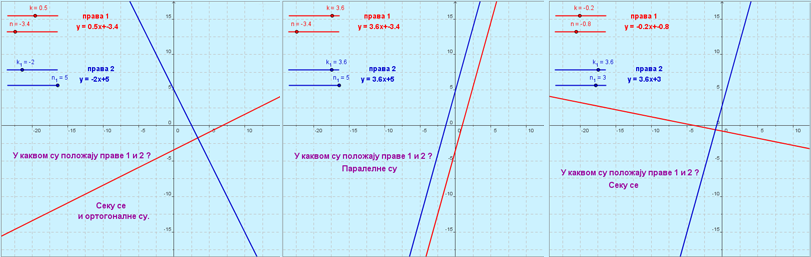 Погледајмо у каквом положају могу бити две праве, када им мењамо коефицијенте.