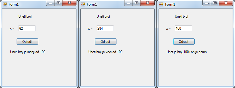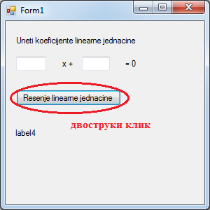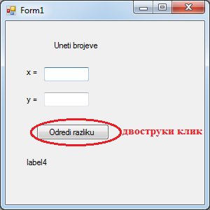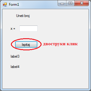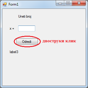 Преименујемо label-e и button1 Слика 6.29. Изглед форме након преименовања компоненти |