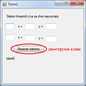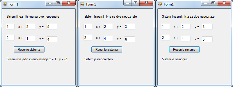 label6.Text = "Sistem ima jedinstveno resenje x = " + x + " i y = " + y;
