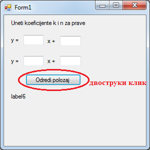 Како је y=k*x+n једначина праве у експлицитном облику.Правимо форму облика: Слика 6.25. Почетни изглед форме |