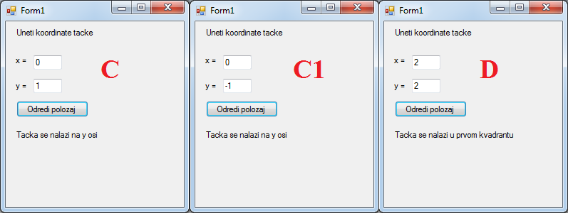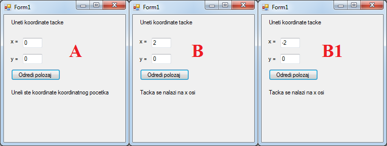 Покренемо програм и проверимо (нпр.за тачке са слике A, B, B1,