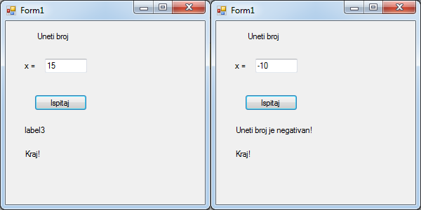 порука Broj je negativan!. Обратимо пажњу на то да ће се порука Kraj! увек извршавати,