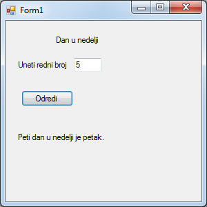 label3.Text = "Cetvrti dan u nedelji je cetvrtak.";