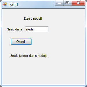 label3.Text = "Sreda je treci dan u nedelji.";