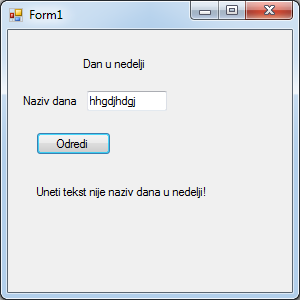 label3.Text = "Uneti tekst nije naziv dana u nedelji!";