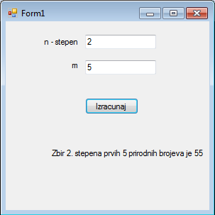 label3.Text = "Zbir " + n + ". stepena prvih " + m + " prirodnih brojeva je ";