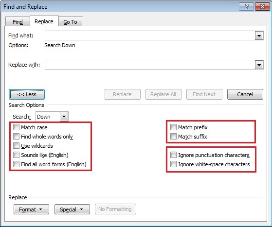 Када при обради документа у програму Word, желимо да користимо опцију Find and Replace можемо видети како се примењује компонента CheckBox.