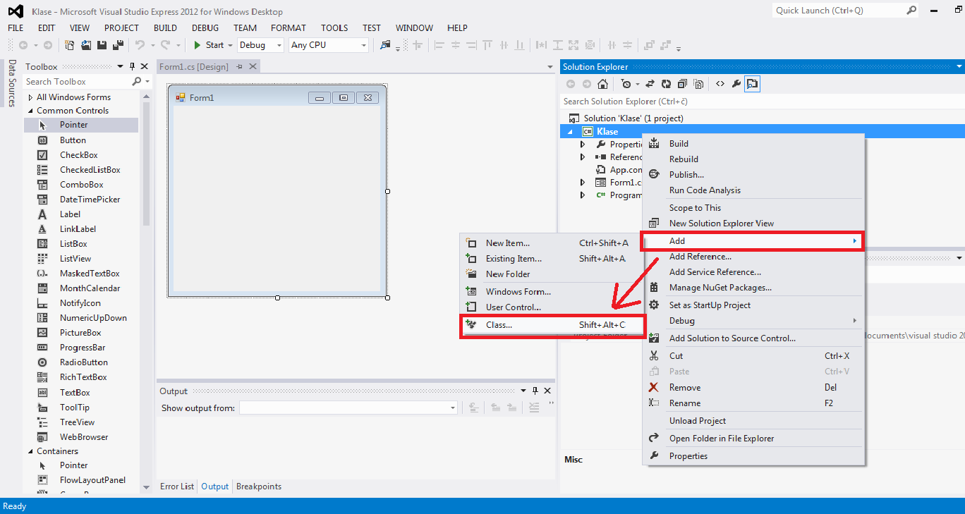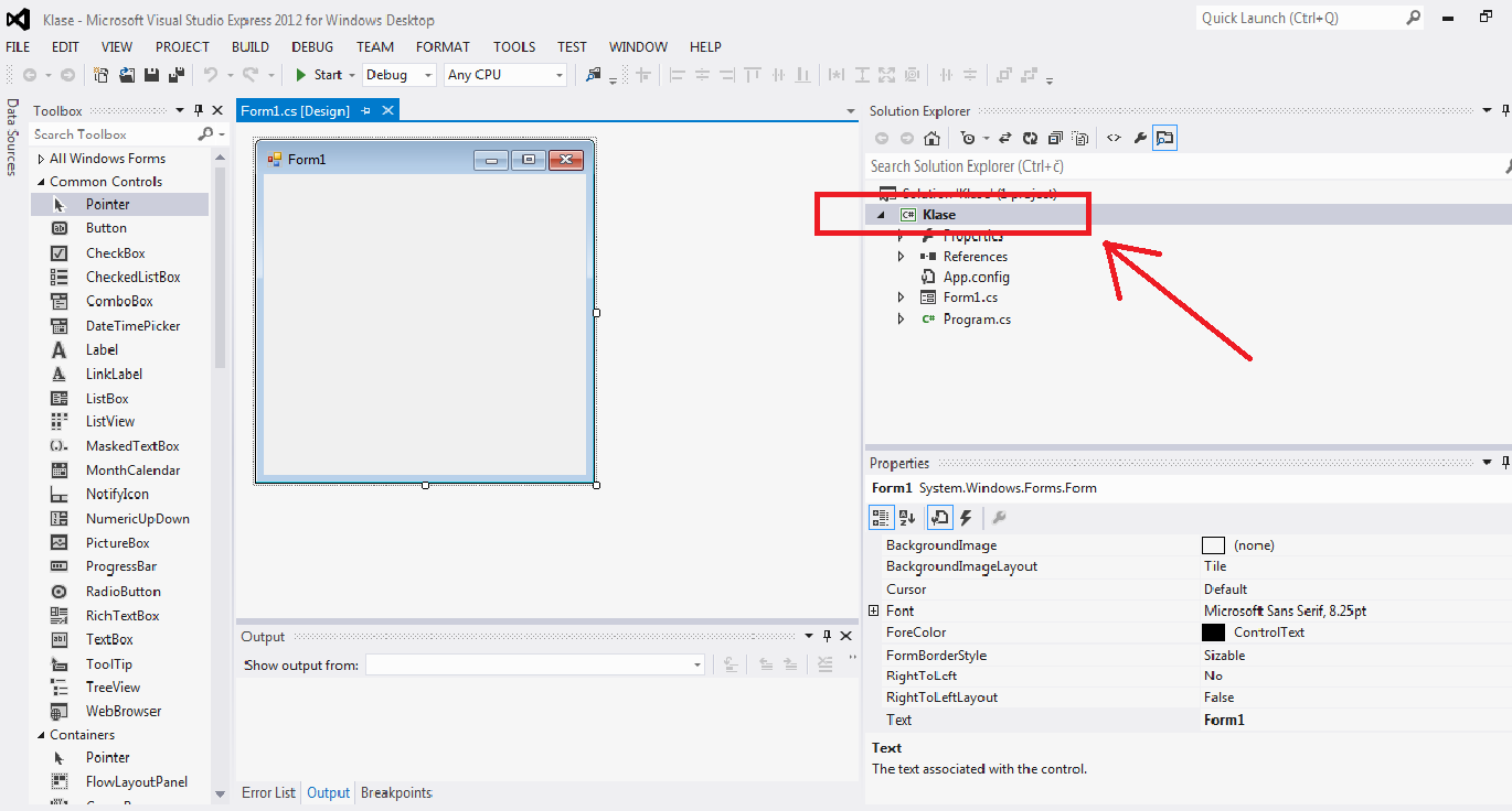 на следећи начин. Најпре, направићемо наш нови пројекат и дати му име нпр. Klase