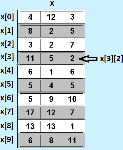 Произвољна табела висине m и ширине n, може се представити као низ дужине m чији су елементи низови дужине n, у ствари имамо m врста и n колона.