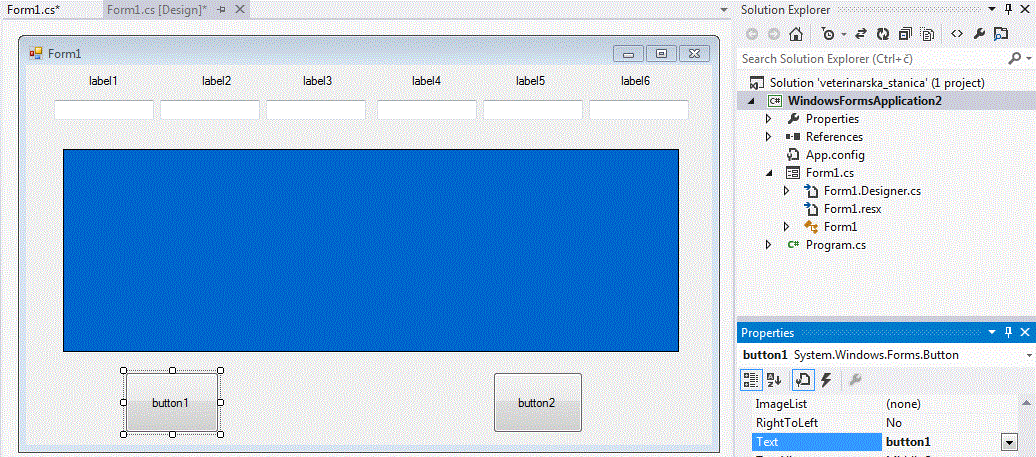 Пошто корисник (у нашем примеру ветеринар) пре прегледа сваког пацијента уноси нове податке, биће нам потребна нека текстуална поља за њихово брже и ефикасније уношење, као и лабеле које ће представљати тачно име податка у одређеном пољу.