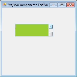 На почетку је TextBox изгледао као што је приказано на Слици 3.2. После писања кода и покретања програма, TextBox изгледа као што је приказанo на Слици 3.3. На почетку TextBox-а стоји курсор. У њему се може куцати неки текст и то у више линија и помоћу стрелица са десне стране, текст може да се помера горе доле.