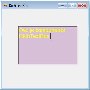 RichTextBox је компонента која се у Toolbox-y налази у категорији Common Controls. Компонента RichTextBox је јако слична компоненти TextBox. Значи, ова компонента такође служи и за унос текста са тастатуре и за исписивање неког текста који се одређује помоћу програма. Разлика између ове компоненте и компоненте TextBox је у томе што је компонента RichTextBox предвиђена за уношење и иписивање текста већег обима, док је TextBox компонента предвиђена за унос углавном једнолинијског текста и ређе текста у неколико линија. Када је ова компонента у жижи у њеном оквиу трепери курсор.