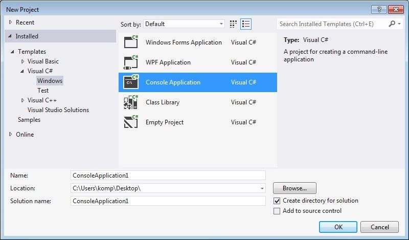 Поред апликација заснованих на прозорима, у C Sharp-у се могу правити и конзолне апликације тј. Console Application. После покретања програма и пошто из File менија изаберемо опцију