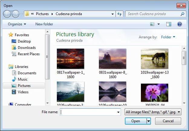 Да бисмо могли да убацимо слику у листу потребно је да кликнемо на дугме Add након чега ће се појавити Windows Explorer у коме треба да нађемо фолдер у коме су смештене нама потребне слике и да изаберемо слике из тог фолдера које желимо да се нађу у нашој листи (Слика 3.3).