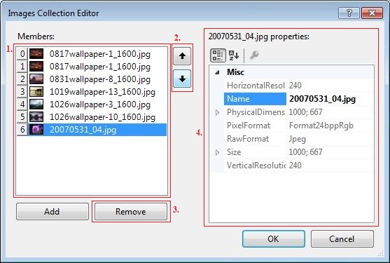 Images је својство које служи за додавање слика у листу. Кликом на иконицу