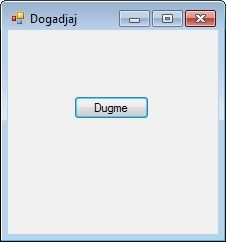 Када сачувамо измене можемо да покренемо програм. После покретања програма форма изгледа као на Слици 3.5. Када се мишем кликне на дугме форма ће изгледати као на Слици 3.6, а када се два пута кликне на форму, форма ће изгледати као што је приказано на Слици 3.7.