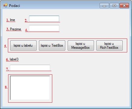 Пример 3. Написати програм који има два TextBox-a и у први се уноси име, а у други презиме особе.