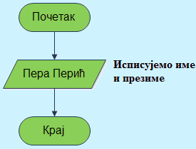 Пример 5. Покушајте да сами опишете дијаграмом алгоритам за исписивање имена и презимена, на пример Пера Перић.