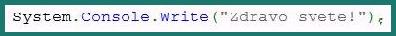 исписивање текста ,,Здраво свете!" на прозору рачунара.
