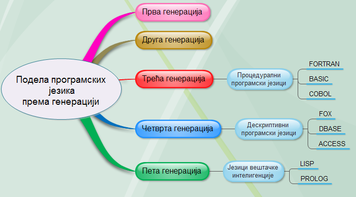 | Слика 1.6. Дијаграм поделе програмских језика према генерацији |