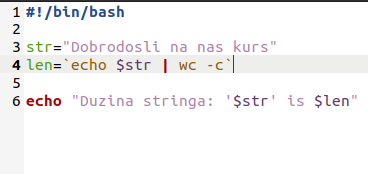 Primer4: možemo koristiti i komandu `wc` za nalaženje dužine stringa