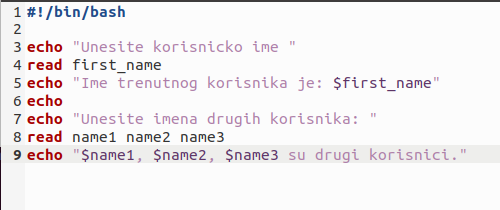 − Da biste definisali promenljivu sa jednoznakovnom vrednošću, kao što je var1=vrednost, nema potrebe da koristite navodnike.